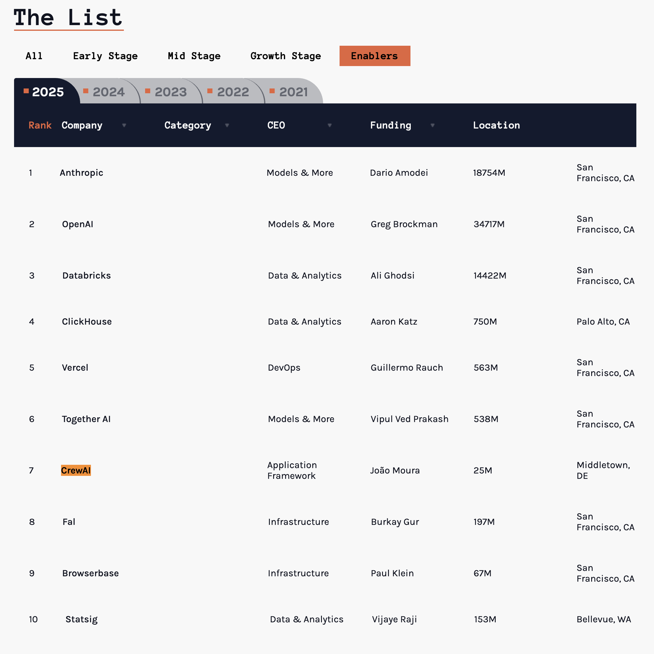 CrewAI与OpenAI和Anthropic一同入选2025年IA赋能者名单
